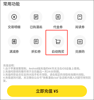 4、取消自动续费:如需取消自动续费,需在自动续费周期到期前至少24小时,打开APP“我的->快看VIP->管理自动续费”中进行取消。