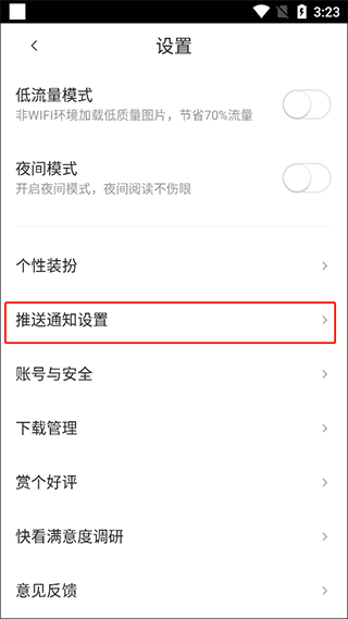 4、进入设置后,点击【推送通知设置】选项。