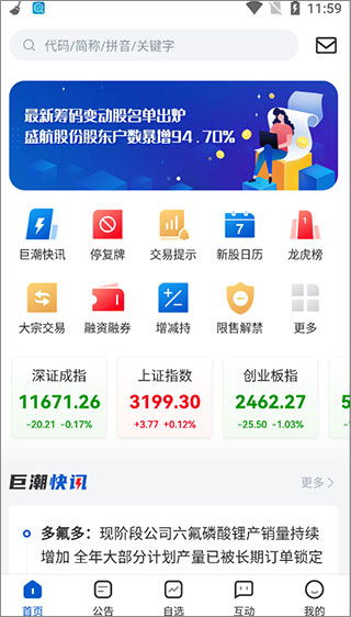 1、进入软件后即可看到其中主要是提供了首页、自选、公告、参与、我的这四大模块