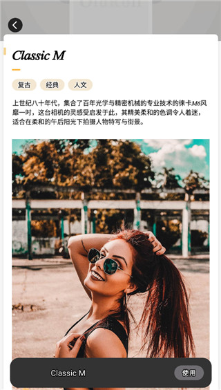 4、Classic M相机的灵感来自具有经典胶片色调的徕卡M6。胶卷的神奇之处在于它可以留住光影,时间和温度。这款相机能为你的照片带来细腻柔和的色调。