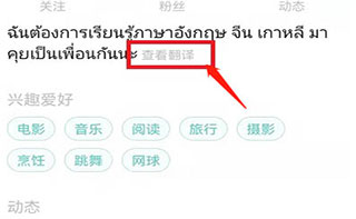 3、在个人主页中,只要是外文旁边也会有一个查看翻译按钮,点击就能帮助大家翻译成中文。