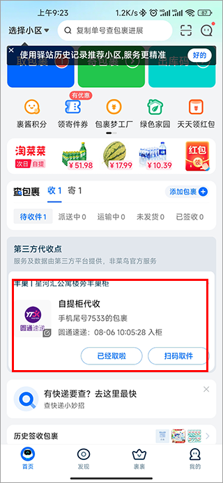不用愁快递小哥什么时候送包裹,自提柜驿站代收,或预约快递小哥送件时间,收包裹更随心。