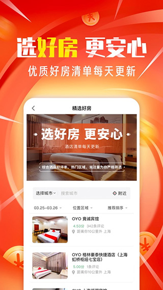 OYO酒店,已覆盖全国290+个城市,5500+家酒店,250000+房间。OYO酒店用超高性价比,打造品质旅居生活空间,更受年轻人喜爱,带你打卡更多网红地标