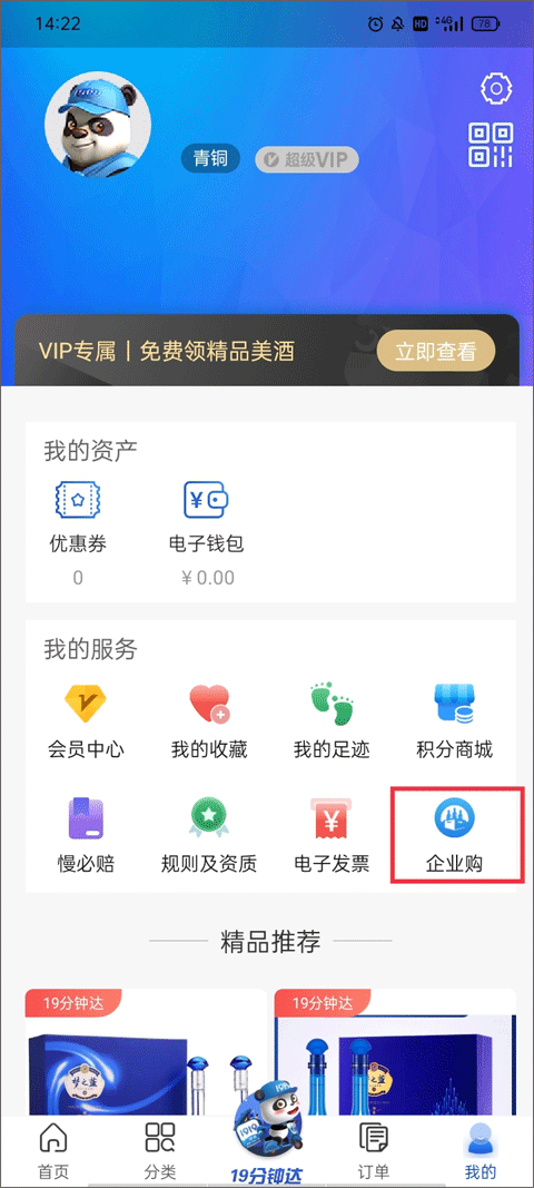 1、选择下方菜单栏【我的】,这个界面分为我的资产和我的服务这两大块,点击我的服务-企业购。