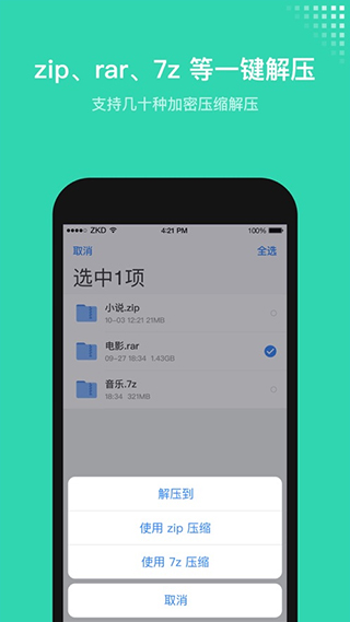 12、 压缩/解压利器:支持ZIP、RAR、7Z格式的压缩和解压缩。