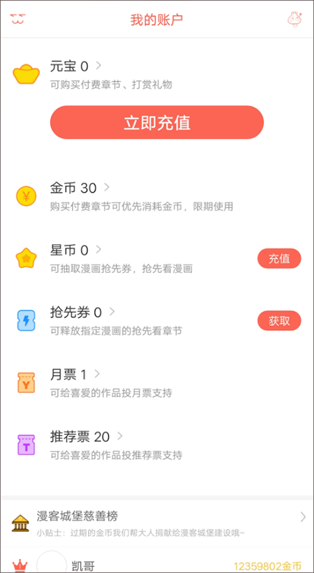 ●使用规则:普通任务获得金币获取后有效期为30天。活动获得金币根据具体活动设定有效期执行。购买漫画付费章节,当用户同时有元宝和金币时,优先消耗金币。购买行为完成后,金币将自动扣除。