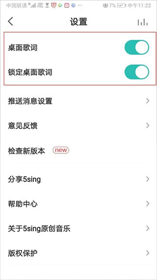 3、在设置页面,点开桌面歌词按钮。然后再点开锁定桌面歌词按钮。