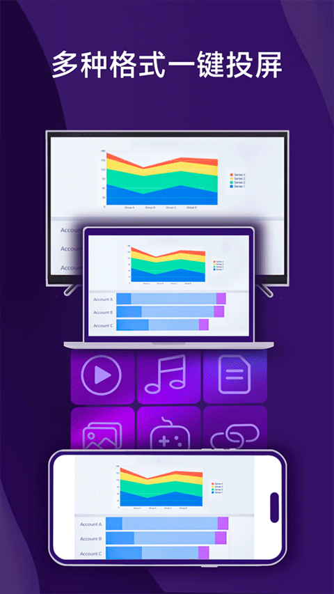 简单易用的投屏App,帮您把屏幕投到电脑和电视,帮您把照片视频音乐播放到电视。