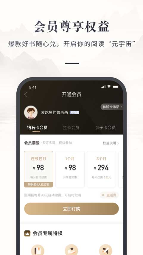 亲子卡、金卡、钻石卡,含金量杠杠滴会员体系:每月全站任选图书邮寄到家,海量电子书任你读。
