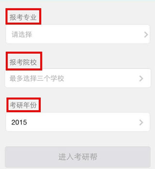 1、下载成功以后,点击打开,这个时候需要完善资料,根据自己的情况分别选择“报考专业”、“报考院校”、“考研年份”,注意:报考院校可以同时选择三个。