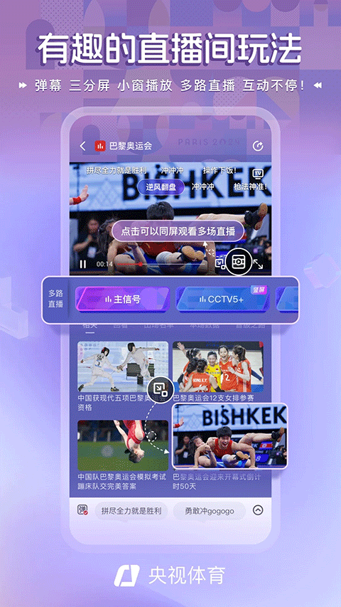 2、体育资讯,尽在掌握。CCTV5强大的记者团队是我们最坚实的后盾,在这里你能了解第一手的重磅消息,还能看到运动员场内场外更多的故事。关注CCTV5客户端,一手资讯尽在掌握!