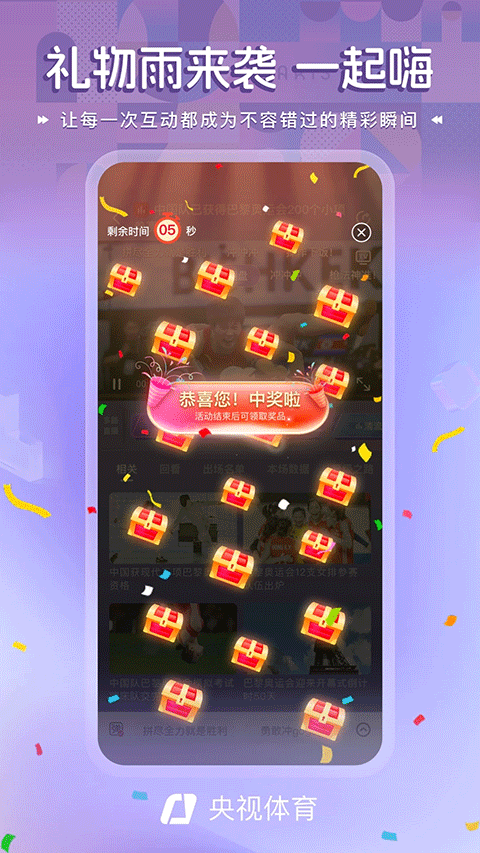 4、有奖互动一起玩。各项赛事期间,CCTV5客户端将会推出比赛竞猜,你可以使用金豆进行竞猜,猜中越多奖励越多,各式各样精美礼品等你来拿哦!
