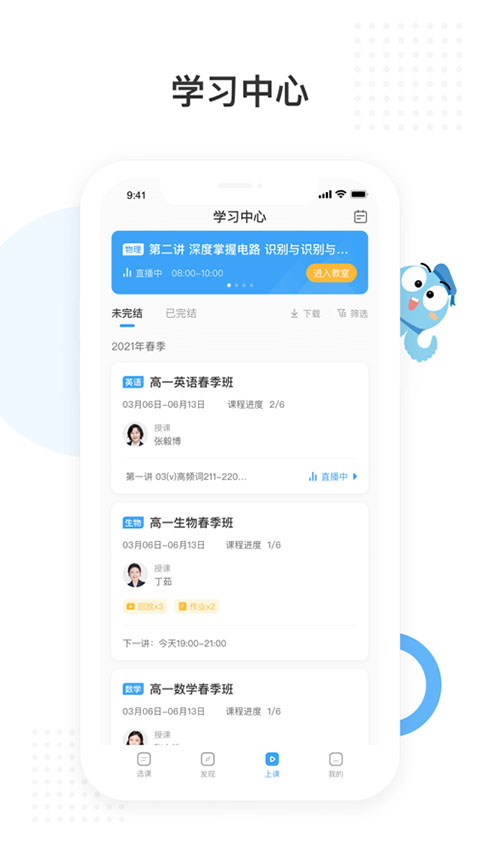 1、直播课程,支持举手、送花功能,实现和老师线上互动学习