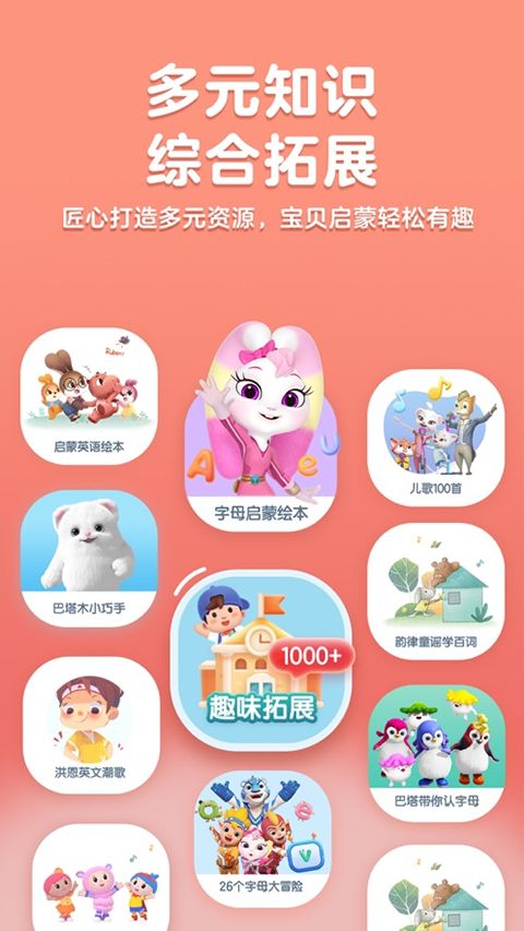 为孩子精心定制了成长内容体系,帮助孩子从认识词句到自信开口表达;