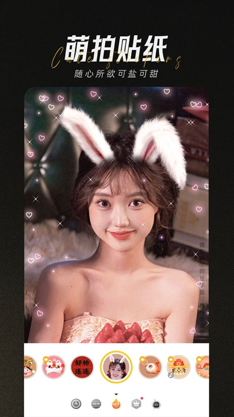各种有趣动态贴纸,智能识别人脸,帮你一键贴准脸部表情,长按拍照键还可以录制短视频,参与拍照挑战,一键分享朋友圈、微博,与全球用户一起嗨!
