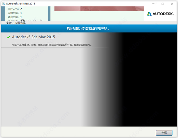 12、成功激活,以上就是3dmax2015中文精简版的详细安装教程,希望对用户有帮助。
