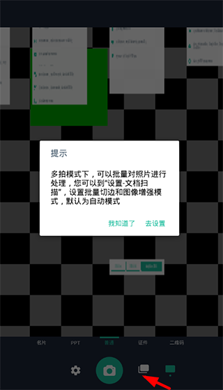 2、通过下方的选项,用户还可以开启多拍模式,从而批量的对照片进行扫描拍摄,提高扫描的效率。