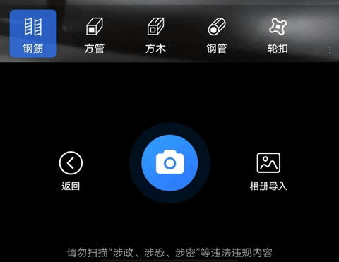1、只要对准你要计数的物品一拍,就能得出该物品的数量,保证精准,此功能还设置了物品种类,使数据更加精确有效,其中有钢筋、方管、钢管和轮扣。