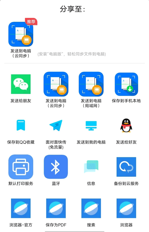 2、导出来的文件还可以分享到电脑(云同步)、保存到本地或者发送给微信qq朋友。