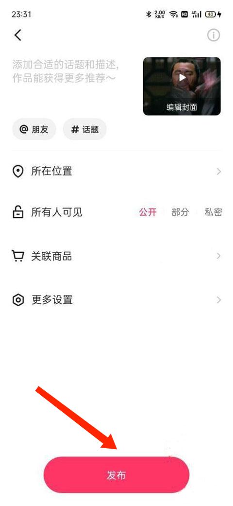 2、进入到作品发布界面,选择“关联商品”小黄车选项,