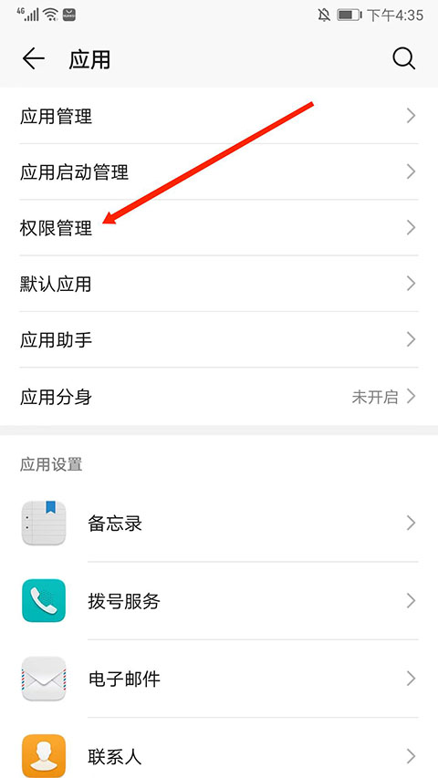 2、选择权限管理进入【应用和通知】页面中,点击列表中的【权限管理】选项。