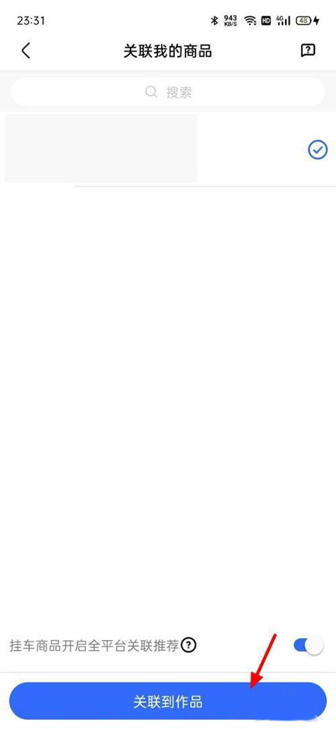 3、然后选择需要的商品,进行勾选,然后选择下方“关联到作品”,