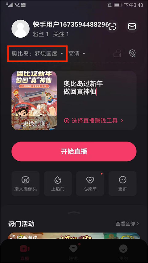 3、设置好相应的封面和标题后,点击下方“开始直播”就可以直播游戏了。