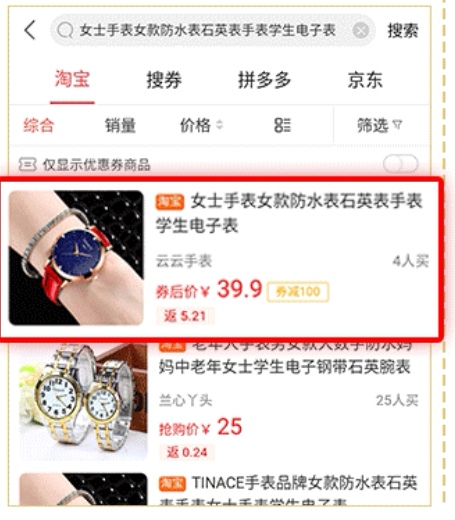 一方面为客户省钱的网购新体验,一方面为合作电商CPS效果营销服务,确保实现客户流量价值最大化和网购资源配置最优化的双赢局面。主要是集合了各大电商的平台,像淘宝啊,京东啊什么的都在上面,你可以选择平台,然后搜索商品,它就会直接跳到相对应的电商平台,然后旁边都有与之相对应佣金,只要你购买了商品,都会有相对应的佣金返利,这样价格又比较便宜,买了之后还会返钱给你。