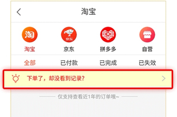 2、下单后5-10分钟查看订单是否显示,无显示则点击“下单了,却没看到记录?”点击找回订单!