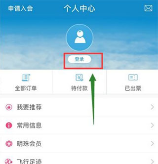 1、进入南方航空苹果版首页点击我的,如下图所示;
