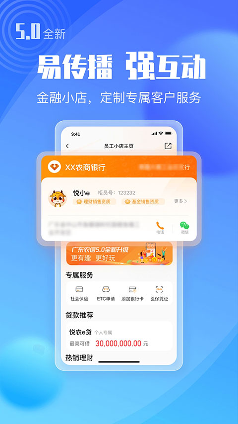 智慧升级,5限精彩,广东农信手机银行5.0全新升级,为您提供更智能、更温暖、更优质的全新金融体验。