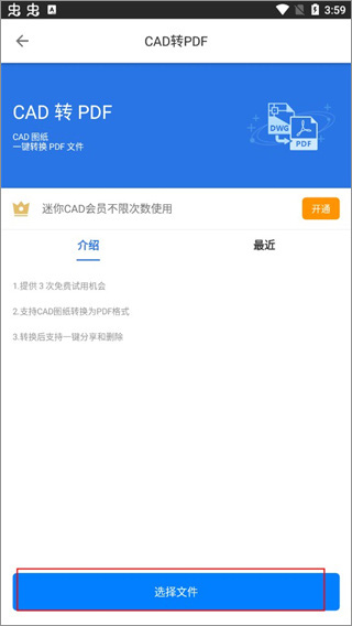 5、点击【选择文件】开始转换,提供3次免费使用机会,登录账号就能试用。