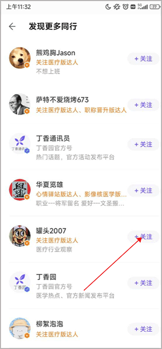 2、找到你需要关注的人,点击右侧进行关注即可。