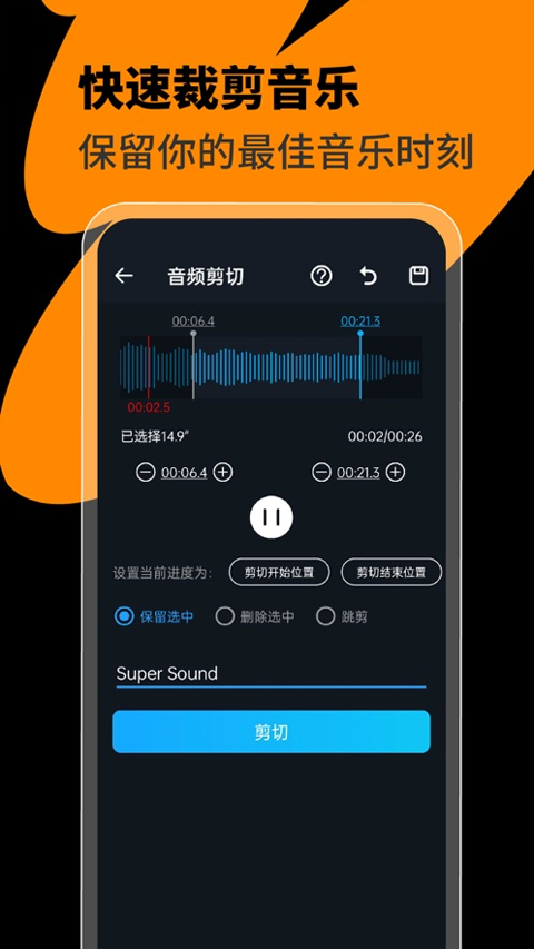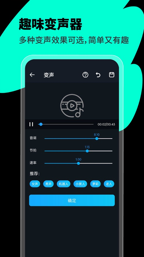 超级音乐编辑器苹果版是一款非常帮的音频剪辑软件,通过它,能够帮助你轻松制作手机铃声、视频配音、视频剪辑等多种操作,界面清爽简约,上手也非常简单。而且该软件提供了视频编辑、音频编辑、音频拼接、格式转换、单声道音频转双声道的服务,支持修改音乐的音调、节拍、速率,且提供了女声、男声、机器人、小黄人、萝莉、老人声音的一键设置,让你轻松达到变声的效果,另外,超级音乐编辑器还支持对MP3、M4A、AAC等多种格式文件进行音频剪辑、剪切、拼接、混音、变声、淡入淡出、快慢速、格式转换、音频提取、升降调、均衡器、消除人声等操作,致力于满足用户所有的使用需求,如果你正需要一款这样的软件,那么快来制作你的音乐吧!