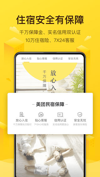 房东实名认证,房客赠送保险,客服7*24小时服务,美团民宿一定保障你的住宿安全!