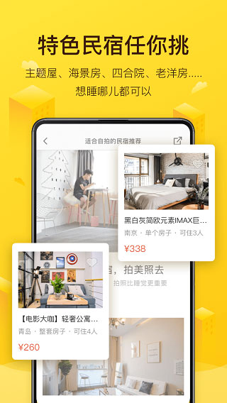 美团民宿为旅行者提供个性化民宿住宿体验。民宿、公寓、别墅、客栈、短租等在美团民宿统统都有,更包罗树屋、房车、INS风等新奇网红民宿。