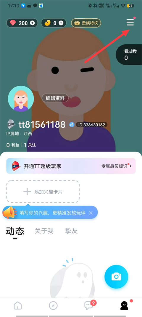 可以进入与TT玩伴的私聊对话框或个人主页,点击右上角“:”,进入特别关心设置,点击[设为特别关心]按钮即开启特别关心