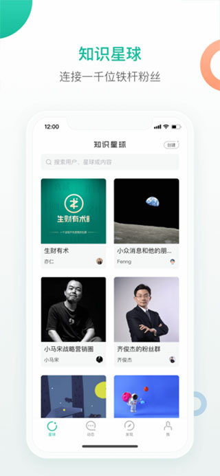 3、除此之外,大家也可以自己创建社群圈子,通过主页里的“创建星球”功能,就可以建立一个自己为主的知识社群,非常方便快捷!