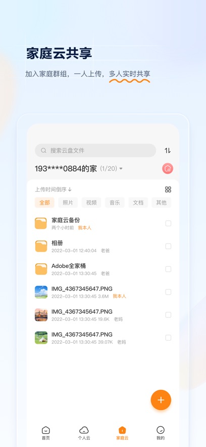 同时,每个存储美好的瞬间都会在首页动态栏留下印迹。动态栏支持同步更新展示家庭云及个人云里的最新操作动态,如查看、上传、自动备份等。点开动态栏还可查看近期全部动态,轻松共享亲友云端生活,让刷家庭圈成为一种享受~