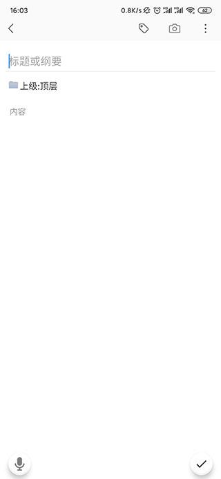 4、点击新建笔记后,就可以开始记笔记了,写好后点击右下角的√即可存入成功: