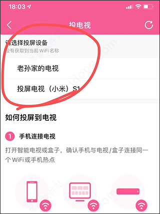 3、再回到app里面点投屏刷新一下就有了,因为那些直接能投屏的app例如爱奇艺、优酷、腾讯视频之类的都是默认打开本地网络的,而该软件是没有默认打开权限的,需要手动开一下