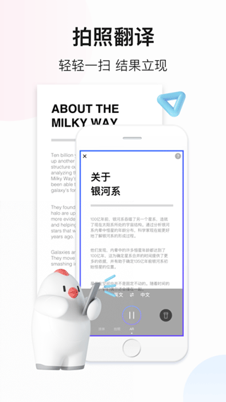 – 拍照翻译:无需输入,轻轻一拍,翻译结果立刻实景展现。支持拍照、涂抹、AR三种模式,覆盖中、英、日、韩、法等20种热门语言。
