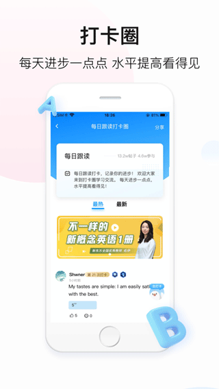 – 每日跟读:精美卡片和美句,专业多维度打分和纠错,同时支持音标学习,助力提升口语发音。