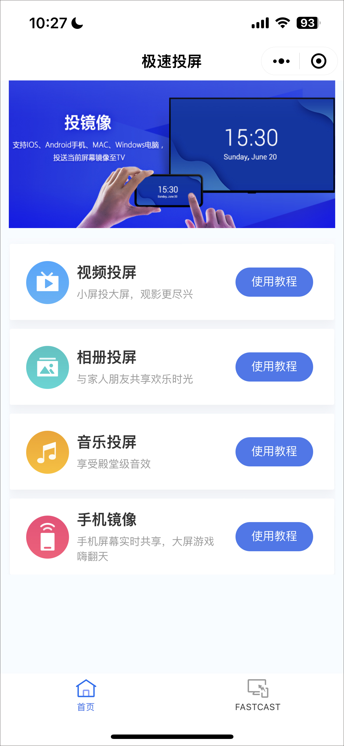 2、点击FASTCAST手机镜像界面,扫码适配网络