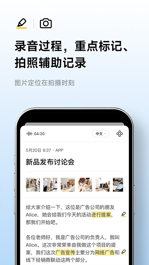 支持先录音后转文字和多种格式音频导入转文字,1小时音频5分钟出稿,快速精准。