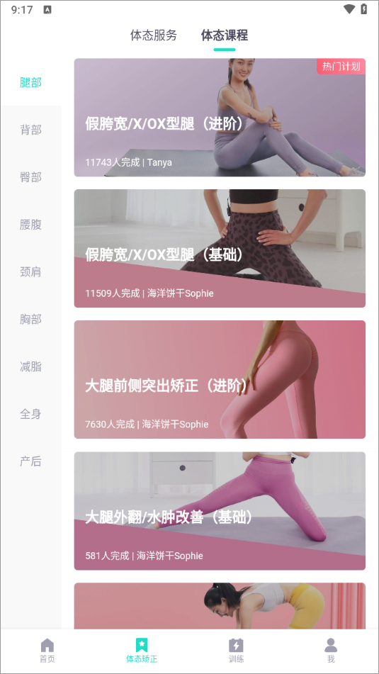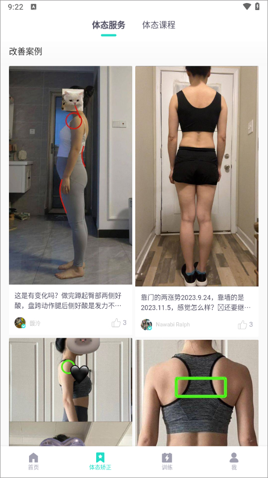 1、首先进入app后,在体态矫正这个界面可以看看别人的改善案例