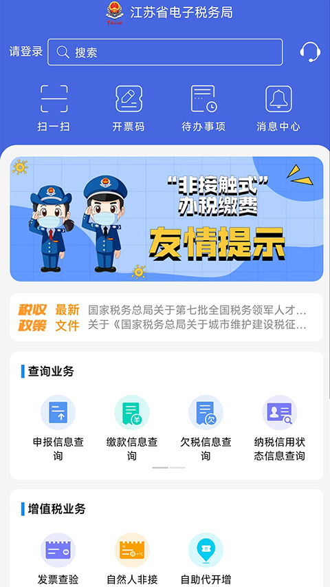江苏税务苹果版是由江苏税务局推出的一款线上办理税务的app。在税务行业服务系统内,有庞大的纳税人用户群体,由于移动互联网用户在我国快速增长,所以江苏税务局运用移动互联网的创新经验成果,促进税务管理的技术进步、管理变革、效率提升,为纳税人智慧办税提供更加便捷的渠道,做到拿起手机就可以实现秒交税款、发票领用等。同时用户可通过输入征收项目、应征凭证种类(申报表类型)、税款所属期起/止、申报日期起/止等条件查询申报缴税明细情况,显示一定时期、一类或者几类申报表的申报缴款信息。进入路径为首页→我要查询→申报信息查询即可操作。除此之外,发票验旧功能,A级纳税人查询,一般纳税人查询等,实名手机绑定,应用提供网上税务局账号共享,直接登录,无需注册等等,开启了江苏税务指尖办税的新时代。有需求的快来本站下载吧!