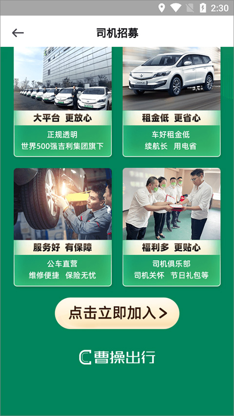 3、接着在打开的司机招募页面中,点击【立即加入】