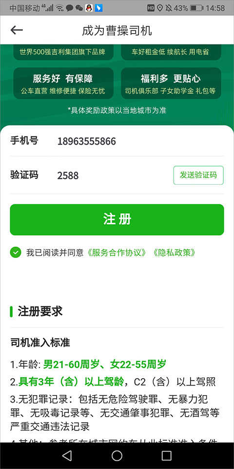 车主用户注册前需要准备身份证、驾驶证、网约车从业资格证、白底证件照