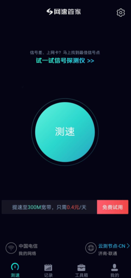SpeedTest轻轻一点,瞬间提升宽带网速,中国电信宽带最高可达500M,中国联通宽带最高可达700M,中国移动宽带最高可达1000M;无需更换套餐,线上办理即生效,无效果立即退款。
